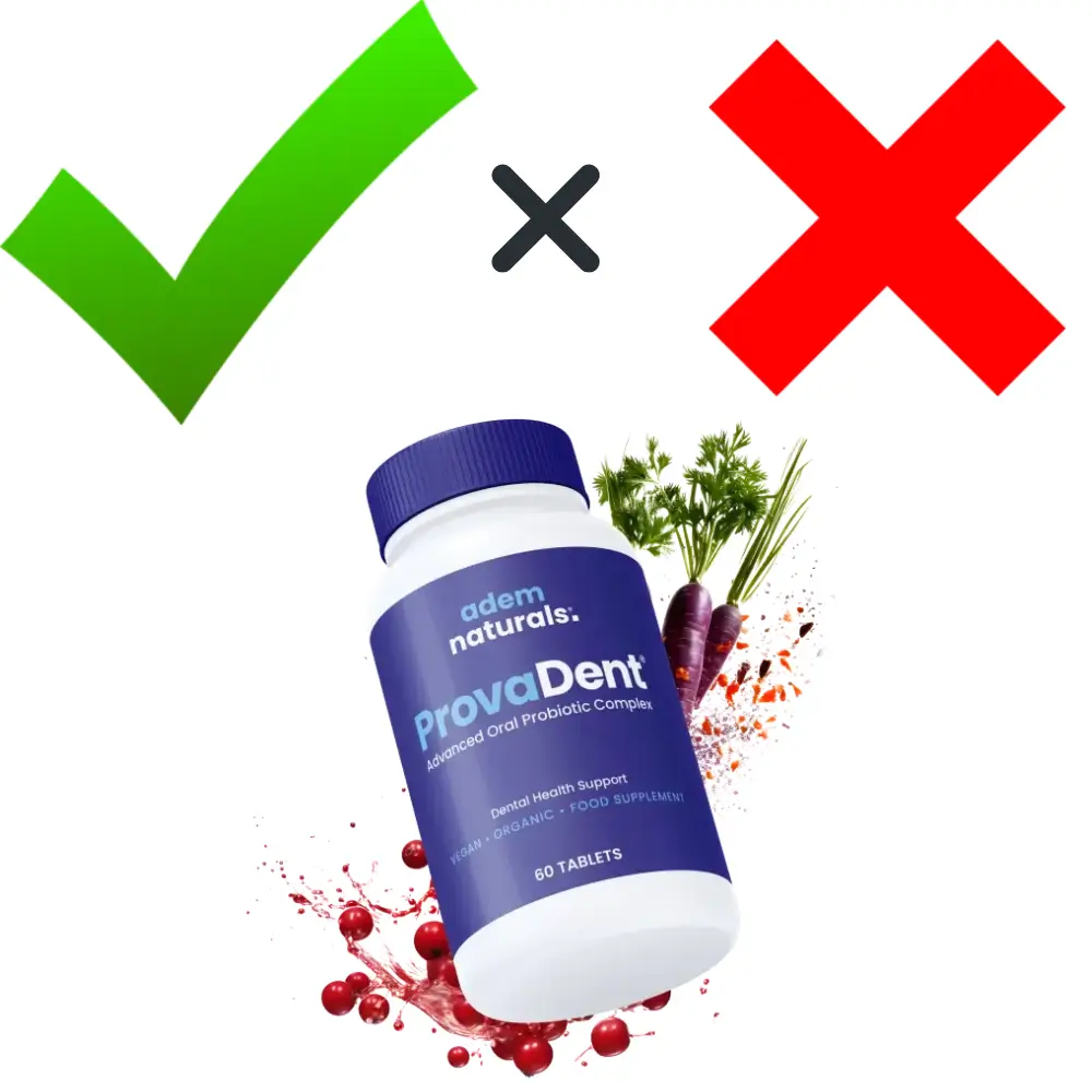 ProvaDent may assist in tackling existing dental issues by increasing beneficial oral bacteria and inhibiting harmful strains. However, it does not intend to replace professional dental care for severe oral conditions like gingivitis, periodontitis, or bleeding gums.